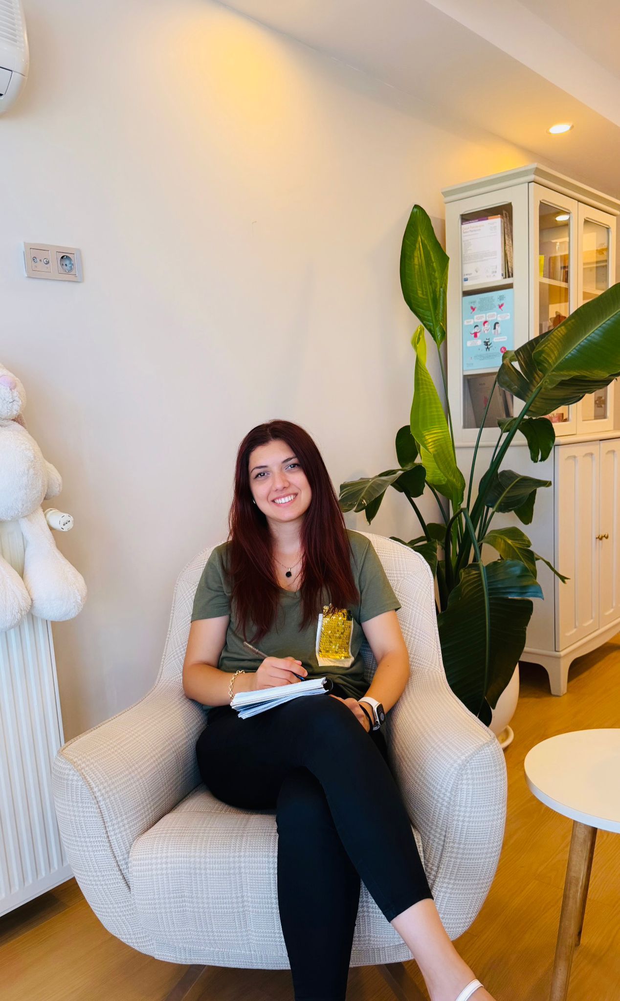 Dil ve Konuşma Terapisi lisans mezunları olarak Türkiye genelinde 5. mezunlardandır. Lisans eğitimi boyunca Üsküdar Üniversitesi NP Hastanesi Feneryolu Tıp Merkezi'nde, Dilmer Dil ve Konuşma Bozuklukları Merkezi'nde, Logos Dil ve Konuşma Terapisi Merkezi'nde, Türkiye Spastik Çocuklar Vakfı / Cerebral Palsy Türkiye – Metin Sabancı Merkezi'nde, TOGEMDER Özel Eğitim Anaokulu'nda, Liv Hospital'da staj ve gözlemlerini tamamlamıştır. Intern olarak Üsküdar Üniversitesi Dil ve Konuşma Terapisi Araştırma ve Uygulama Merkezi (ÜSESKOM)'da seanslarını gerçekleştirerek mezuniyetini sağlamıştır. Eskişehir 9. Larengoloji Kongresi, 9. Ulusal Dil ve Konuşma Bozuklukları Kongresi, Kekemeler Derneği 3. Türkiye Özgürce Kekele Konferansı, Medipol Üniversitesi 1.Kekemelik Sempozyumu ve Ulusal Dil ve Konuşma Bozuklukları Kongresi'ne katılım sağlamıştır. ETEÇOM, GOBDÖ-2-TV, Çalışma Belleği Ölçeği, Hızlı İsimlendirme Testi, Erken Okur Yazarlık Testi (EROT), Ankara Gelişim Tarama Envanteri (AGTE), Oyun Terapisi Uygulayıcı kurs eğitimlerini, 2019 yılında DIR Floortime 101 eğitimini almıştır. Ayrıca ‘Treatment of Pediatric Motor Speech Disorders: Childhood Apraxia of Speech’ , ‘Total Larenjektomi ve Laringeal Konuşma (ve TEP)’ , ‘Yetişkinlerde Dizartri Değerlendirmesi’ , ‘Yetişkinlerde Konuşma Apraksisi’ , ‘Dislekside Okuma Akıcılığının İnformal Araçlarla Değerlendirilmesi’ , ‘Sözcük Dağarcığını Geliştirmek İçin Etkin ve Kapsamlı Bir Terapi Yaklaşımı’ , ‘Kekeleyen Bireylerde Bilişsel Davranış Terapisi Aracılığıyla Biliş ve Duygu Analizi’ , ‘Ergen ve Yetişkinlerde Kekemelik Terapisi’ ‘Oyun İçinde Duyusal Farkındalık’ kurslarına katılım sağlamıştır. Tez konusunu ise 'Türkçe Konuşan 4-6 Yaşlarındaki Çocuklarda Normal Akıcısızlık Davranışlarının Belirlenmesi' olarak belirlemiş ve bu konuyla ilgili bir çalışma yürütmüştür. 5. Ulusal Disiplinlerarası Erken Çocuklukta Müdahale Kongresi'ne katılarak 'Türkçe Konuşan 4-6 Yaşlarındaki Çocuklarda Normal Akıcısızlıkların İncelenmesi' adlı çalışmasını sözlü bildiri olarak sunmuştur. Ayrıca çalışması Erken Çocukluk Çalışmaları Dergisi'nde 2022 yılında yayınlanmıştır. Yüksek Lisans Tez konusunu 'Türkçe Konuşan Kekemeliği Olan ve Olmayan Okul Çağı Çocuklarda Anlamsız Sözcük Tanıma ve Tekrarlama Görevlerinin Karşılaştırılması' olarak belirlemiştir. Yayınlanmak üzere çalışmalar yürütmeye devam etmektedir.